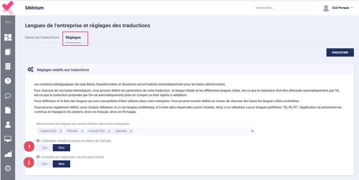 Vous pouvez les activer depuis le menu “Traductions”, onglet “Réglages” :